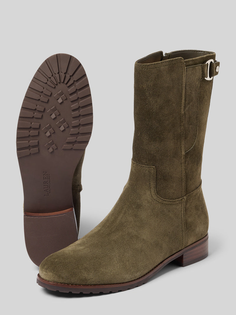 The TASHA ankle boots from Lauren Ralph Lauren feature a rounded toe and mid-height heel, providing comfortable support. The subtle label detail underscores the classic cut, while the shaft height allows for versatile combinations with various outfits, creating a look suitable for everyday wear.