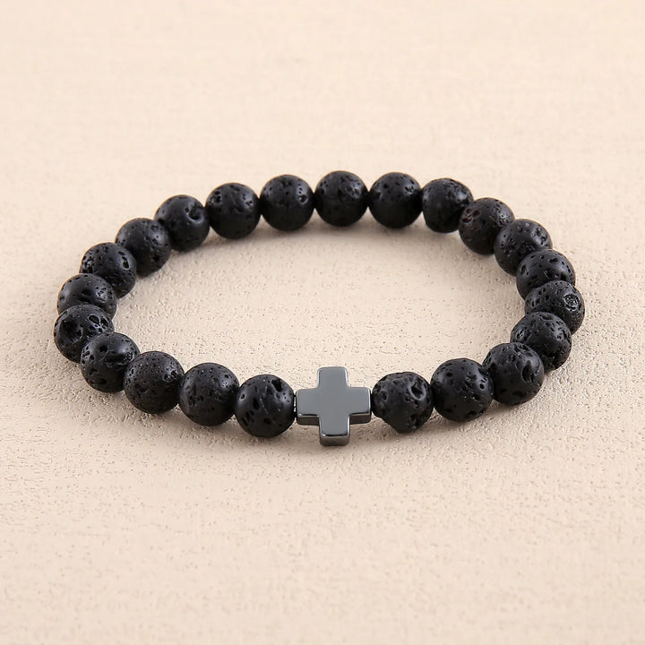 Never Needy Cross Natural Stone Bracelet