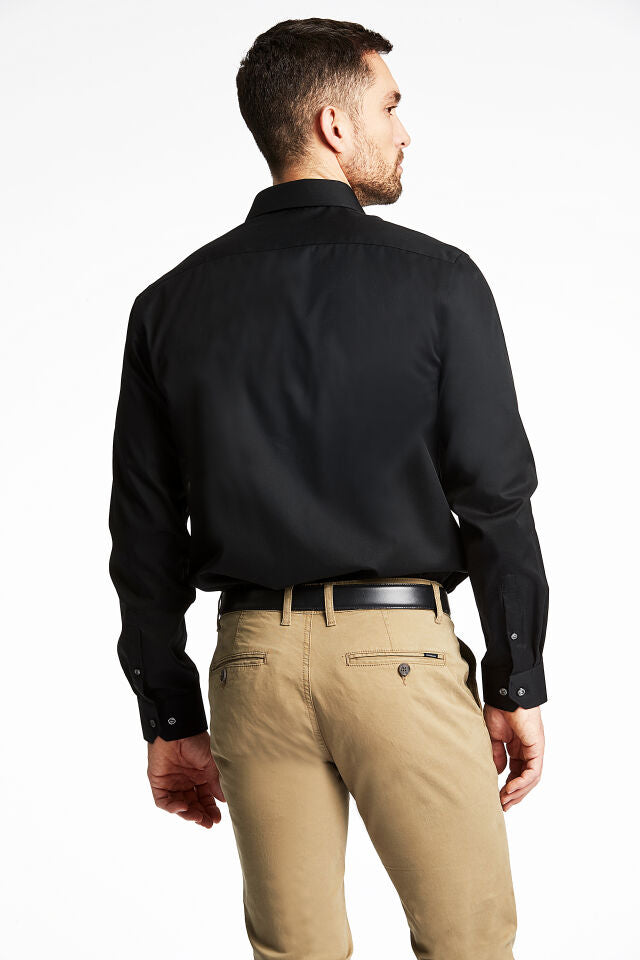 Quality shirt made of 100% two-ply cotton and available in different colours. Super simple design, which can easily be combined with a pair of performance pants or suit trousers. The width of the cuff can be adjusted by two buttons and there is space for cuff links.
