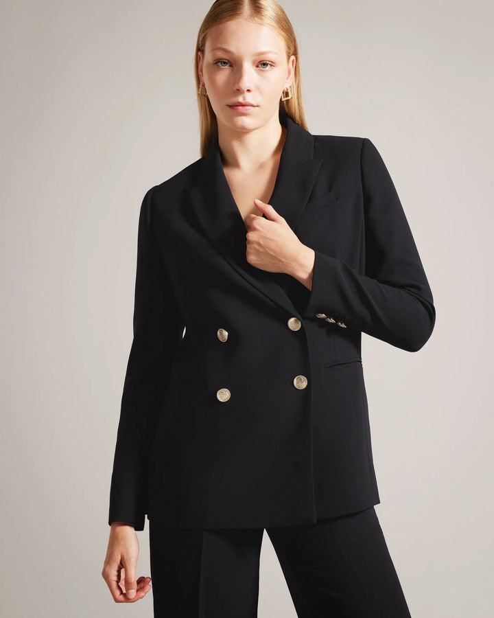 Shell: 100% Polyester; Body Lining: 51% Viscose, 49% Acetate; Sleeve Lining: 100% Polyester