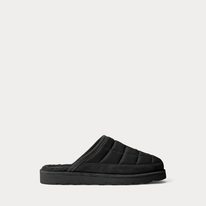 This scuff slipper's quilted construction, plush fleece lining and treaded EVA sole ensure lightweight warmth and comfort. The suede-trimmed upper is finished with our signature embroidered Pony.