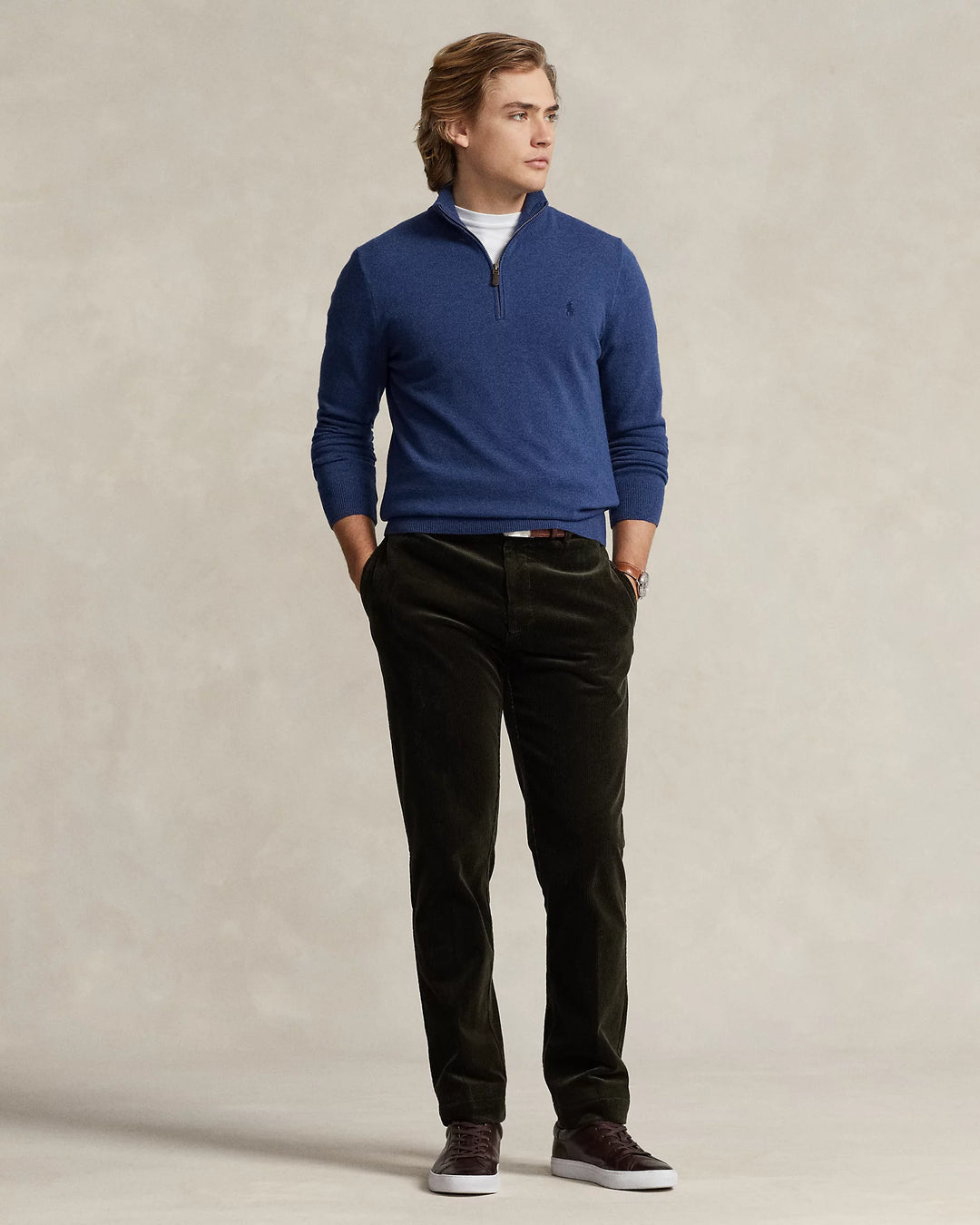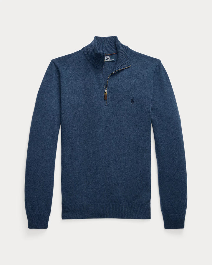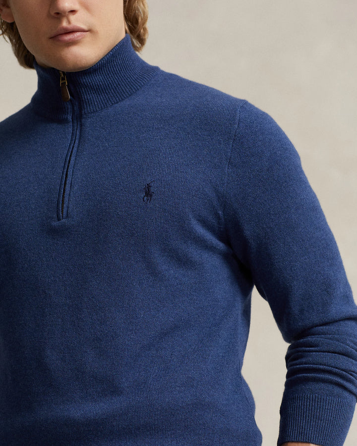 Luxurious Italian wool and our signature embroidered Pony elevate this quarter-zip jumper.