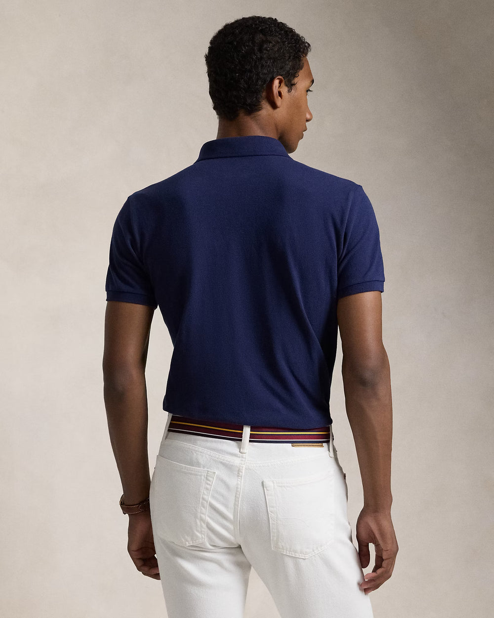 From its meticulous construction—our signature embroidered Big Pony alone requires a total of 10,800 individual stitches to produce—to its cotton mesh fabric, which only gets better with wear, Ralph Lauren's Polo shirt has been an icon of American style since 1972. This version is cut for a trim silhouette and finished with a "3" appliqué—the number typically worn by a polo team's strongest player.