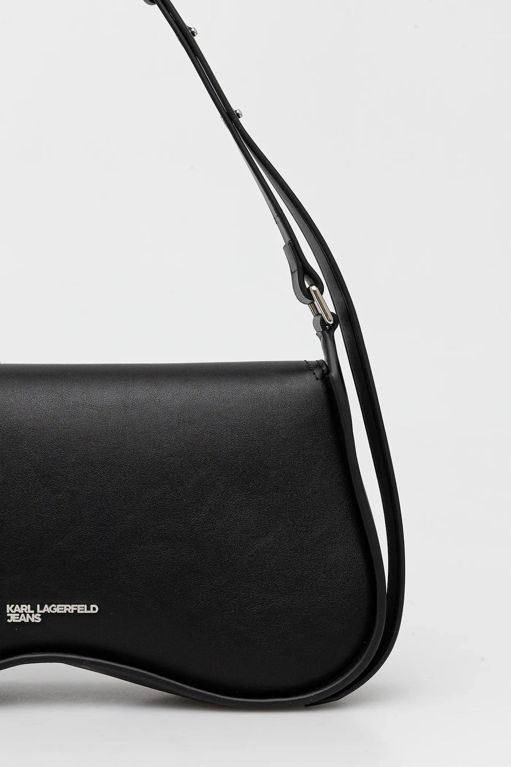Medium-sized bag from the Karl Lagerfeld Jeans collection. With a zipper model made of imitation leather, which is easy to clean and care for. The product contains recycled fiber materials.