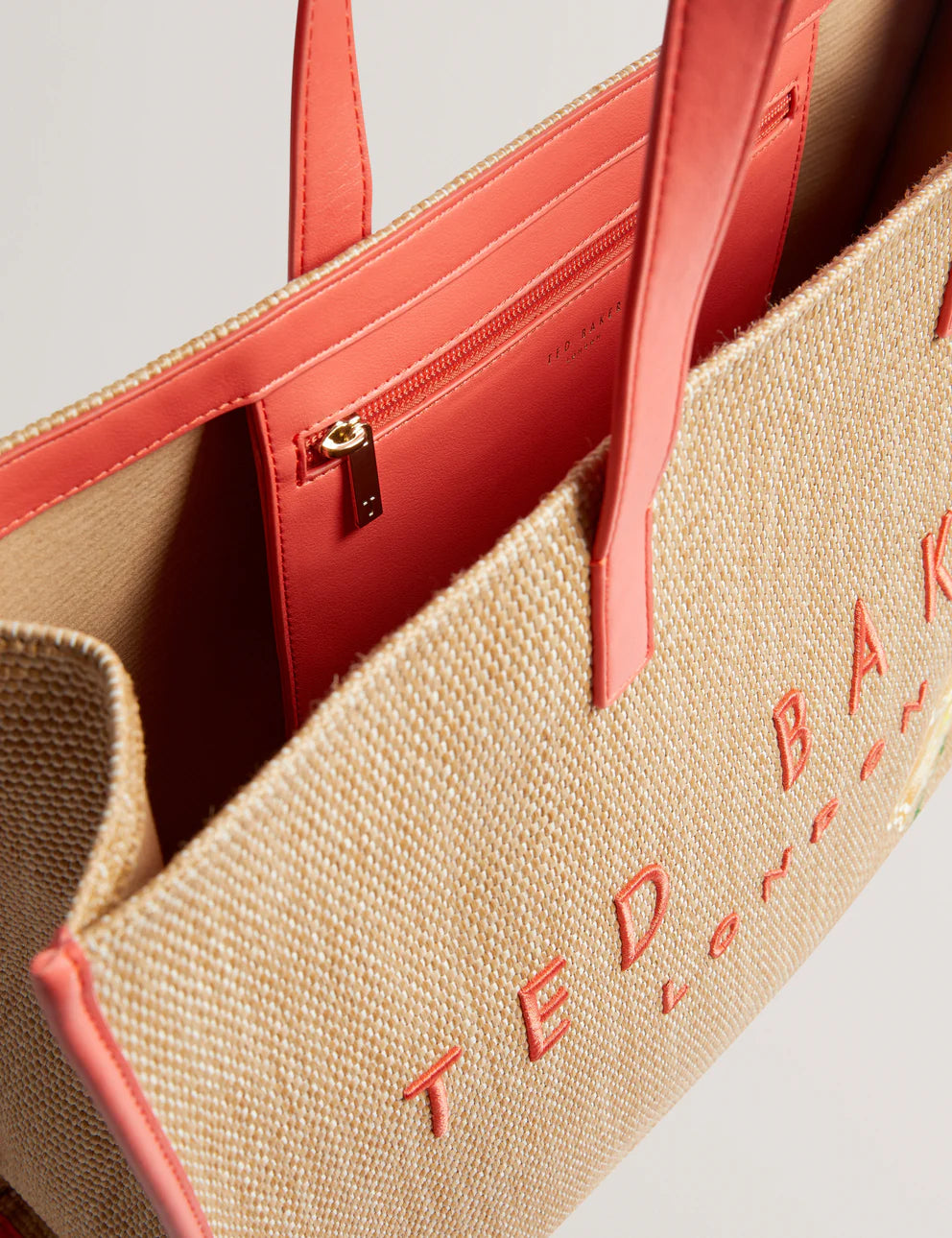 Ted Baker Floraff Floral Applique Extra Large Raffia Icon Bag | Orange