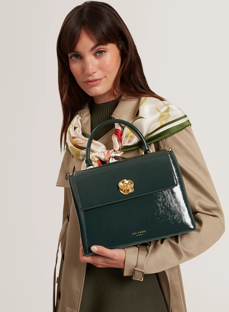 A perfect blend of expert craftsmanship and style, this shoulder bag by Ted Baker is created for women with an eye for sophistication. Structured perfectly, it features gold-toned rose button detail on the flap for an edgy look. While the spacious compartment and back zip pocket promise enough space for your essentials, the top handle and shoulder strap promise carrying comfort.