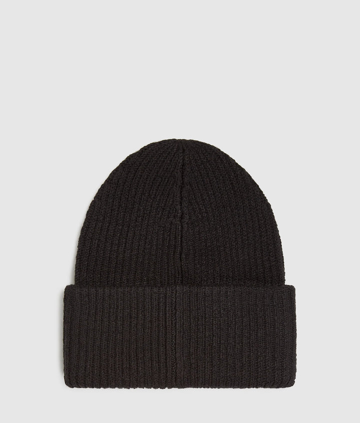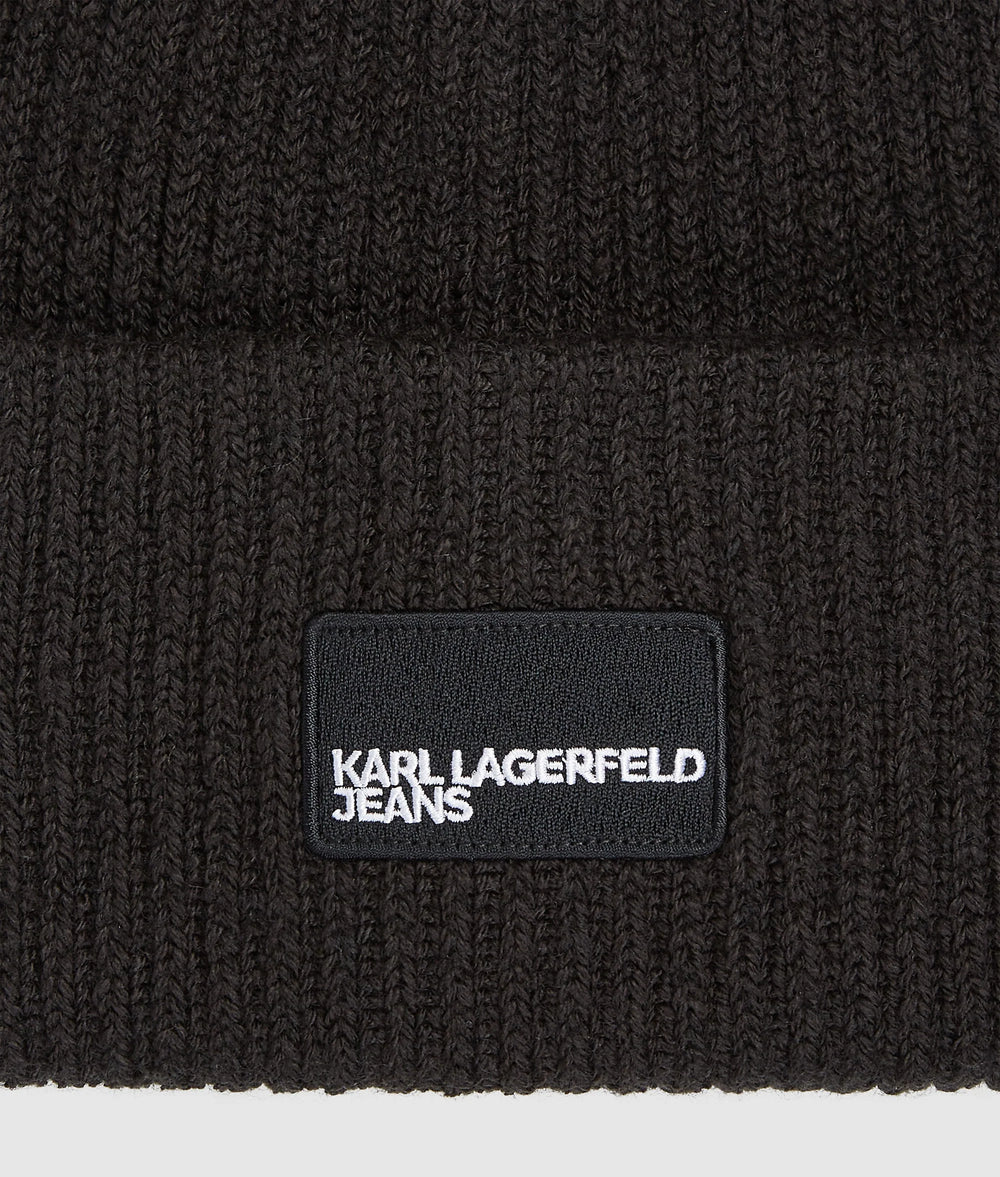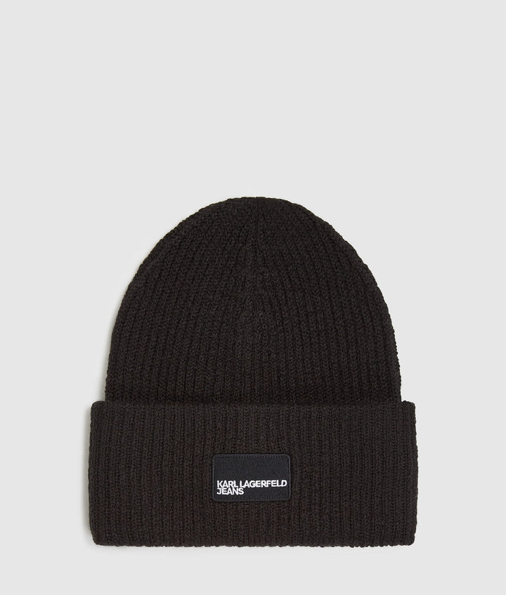 Classic design meets contemporary edge in this folded brim beanie, crafted in a warm, chunky knit. The KARL LAGERFELD JEANS logo patch adds a bold, street-ready feel.