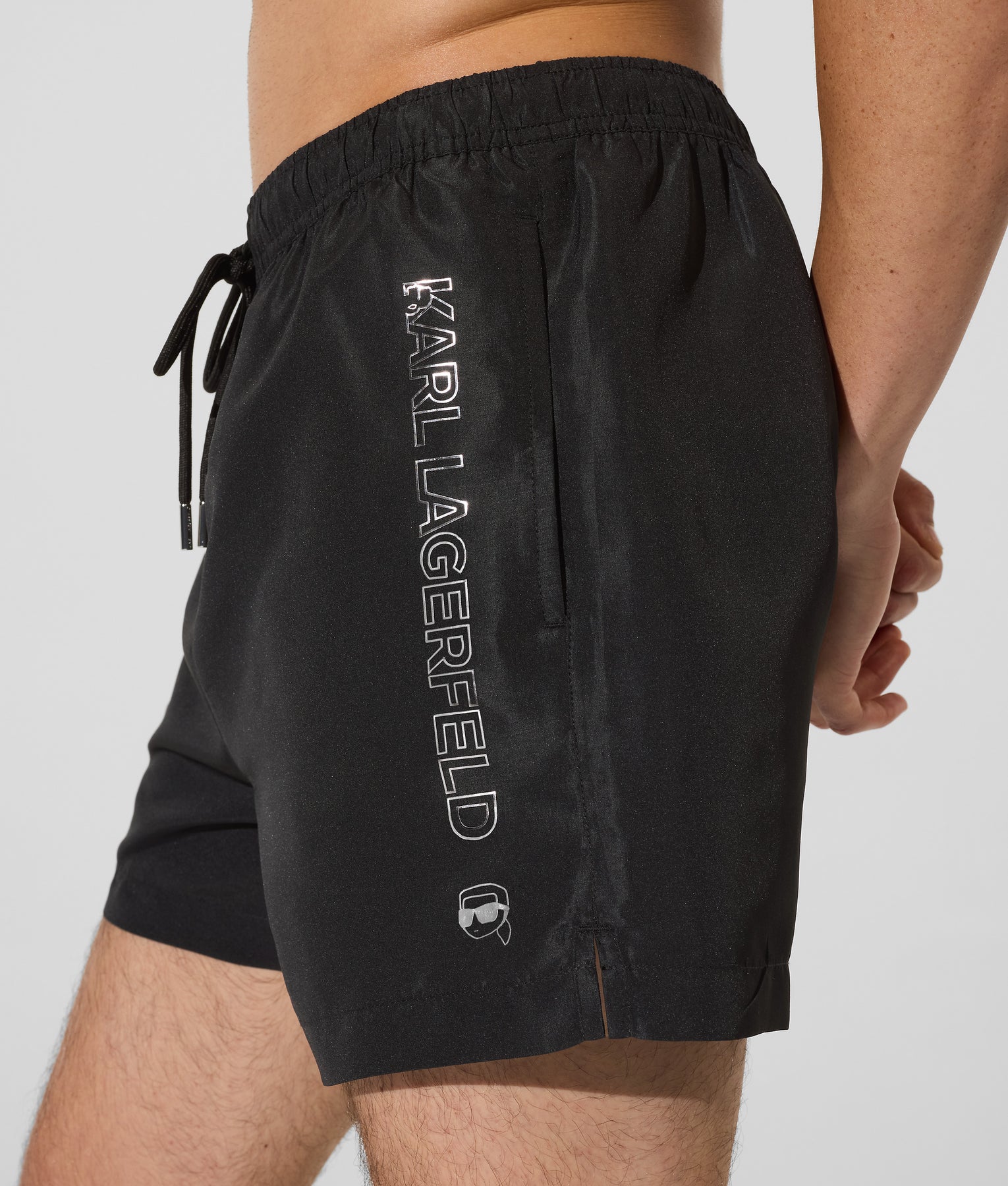 Metallic logo and Ikon Karl artwork running down the left leg