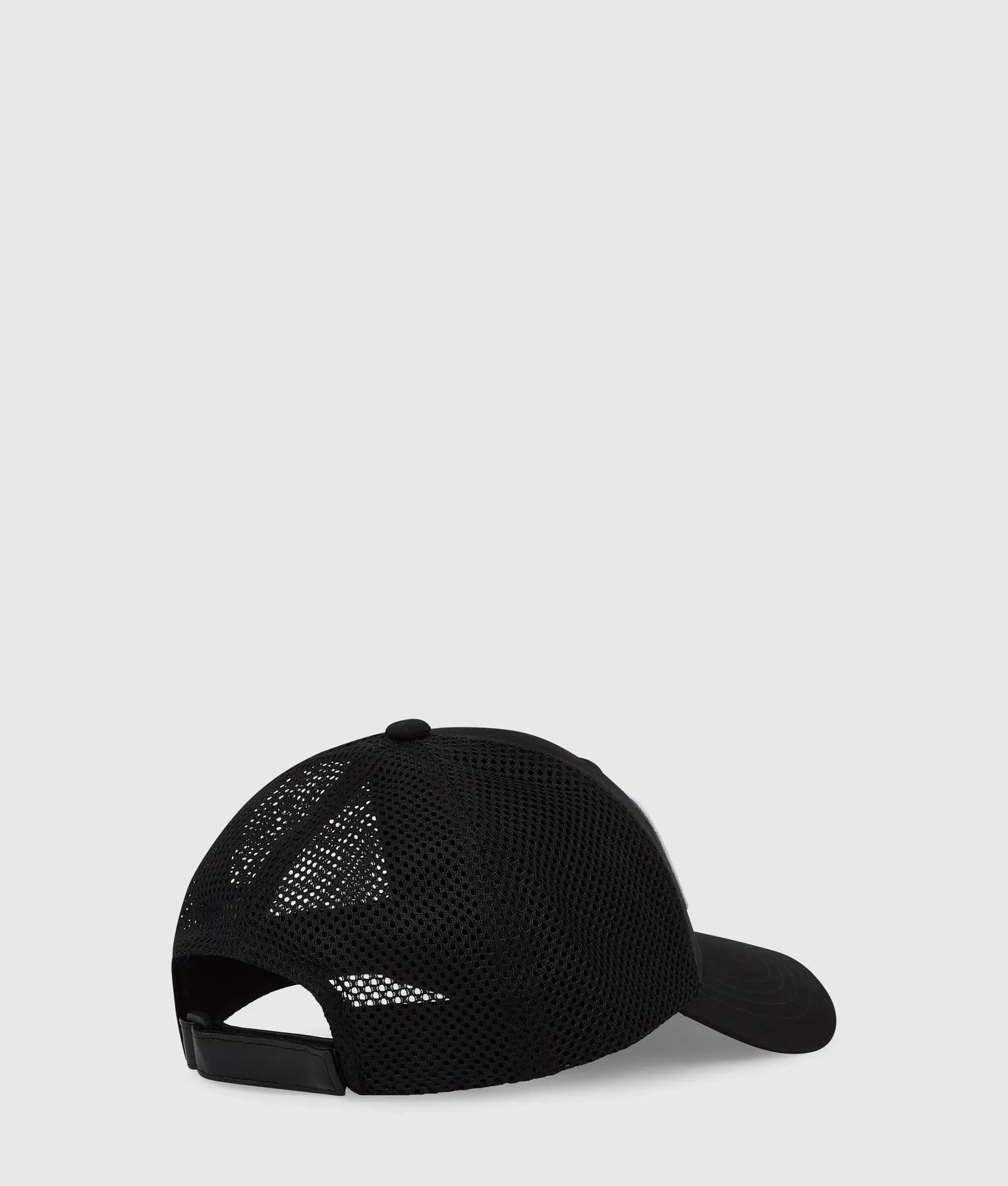 Breathe easy in this trucker cap with breathable mesh panels and a curved peak, topped off with a bold KARL LAGERFELD JEANS patch for street-ready confidence.