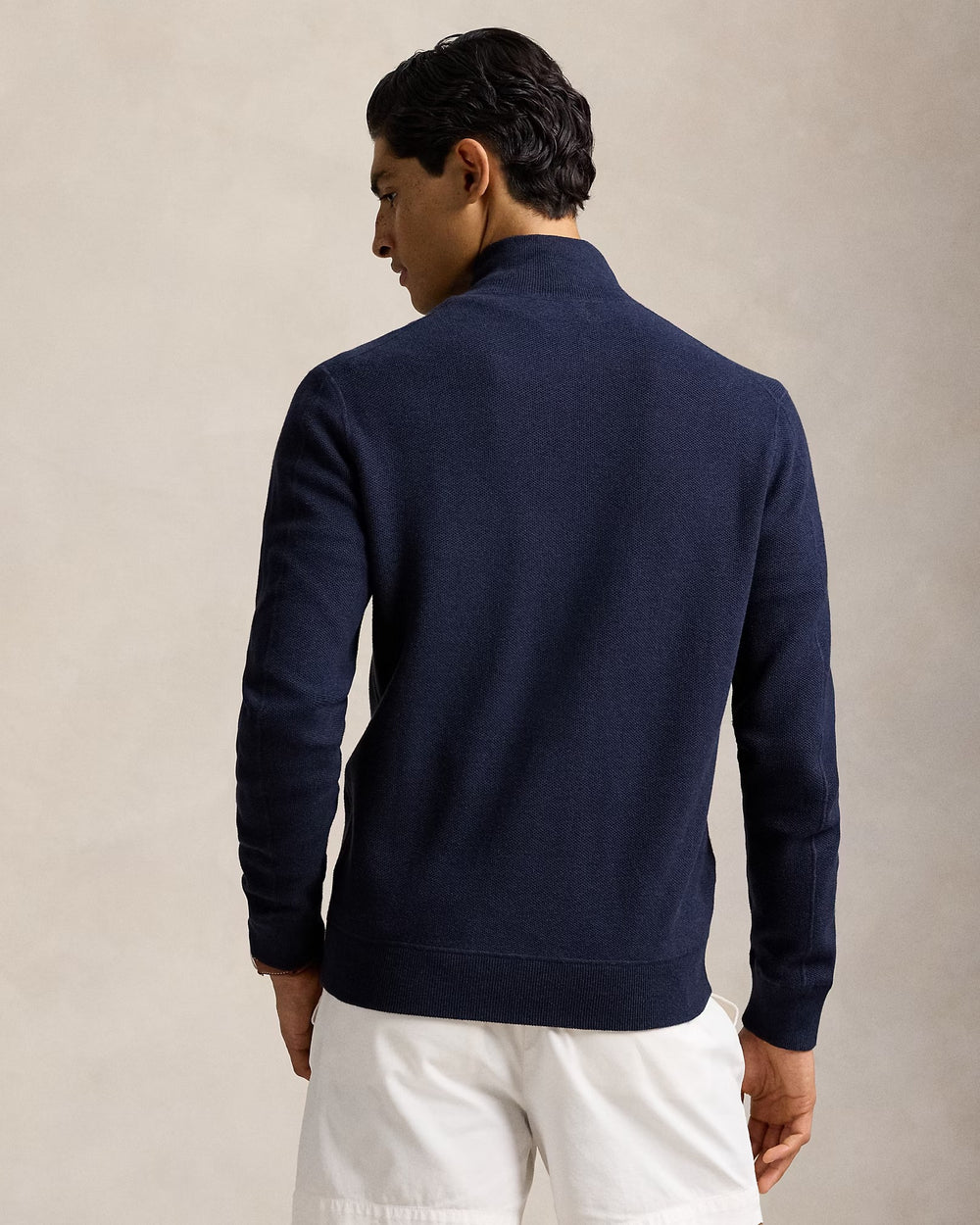 We’ve reinterpreted our iconic mesh fabric with combed cotton yarn to create this full-zip jumper.
