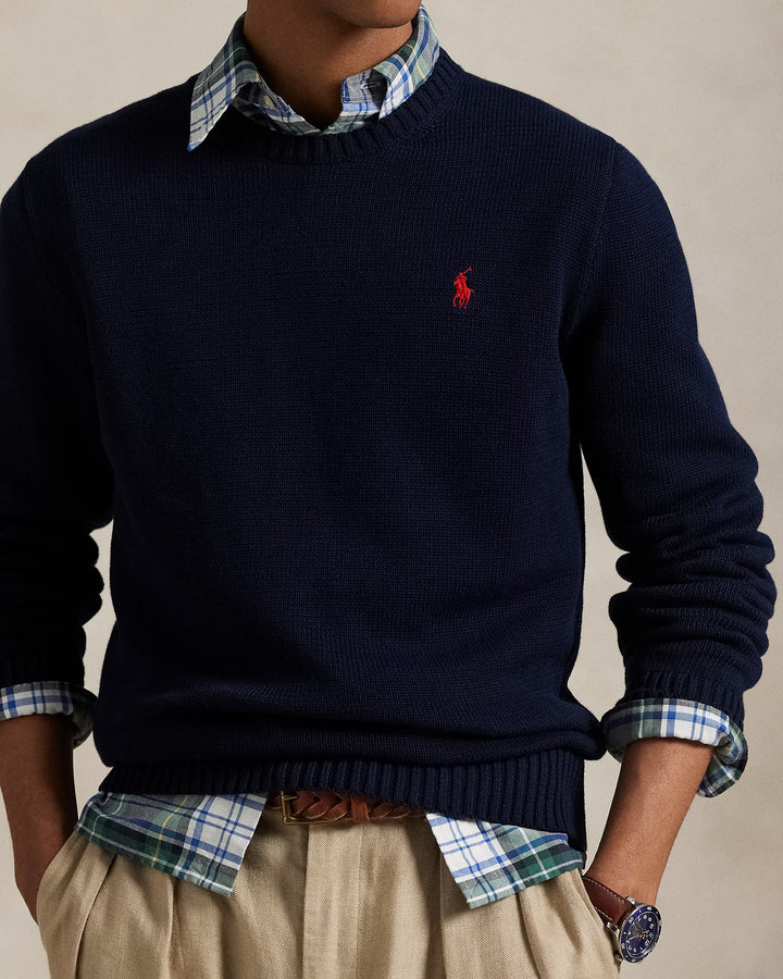 This crewneck jumper will keep you comfortably warm thanks to its soft, breathable cotton.