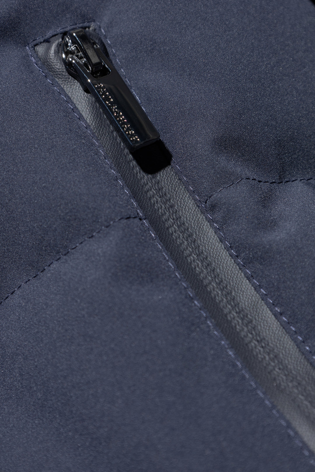 The striking, deep navy shade emphasizes the timeless character of the jacket, while the subtle horizontal quilting enhances its thermal properties. The use of a technologically advanced matte outer fabric combined with luxurious, natural down and feather filling guarantees excellent protection from inclement weather, all while being lightweight and soft to the touch.