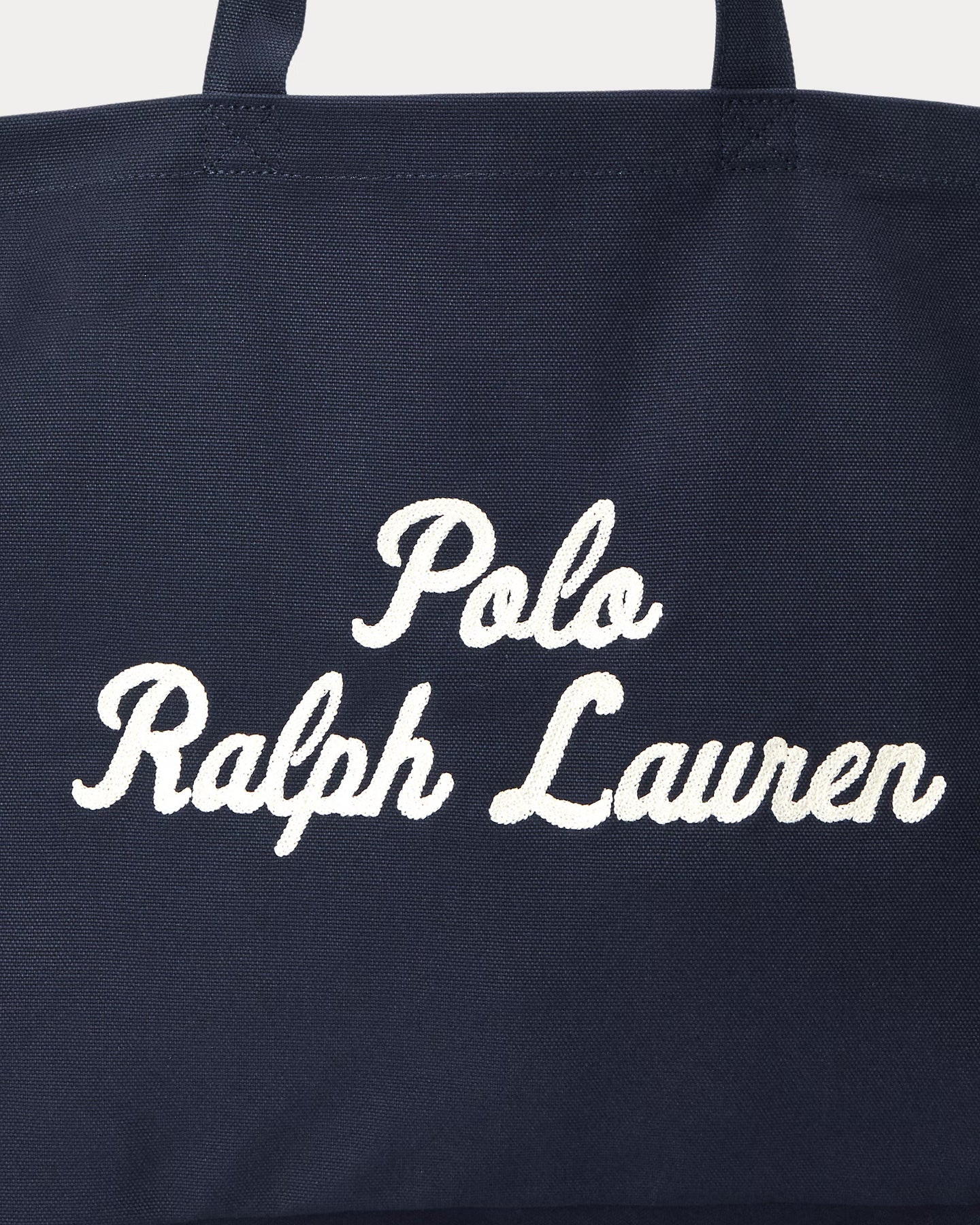 Crafted with durable cotton canvas, this spacious tote is distinguished by Ralph Lauren's signature chain-stitched script logo embroidery.