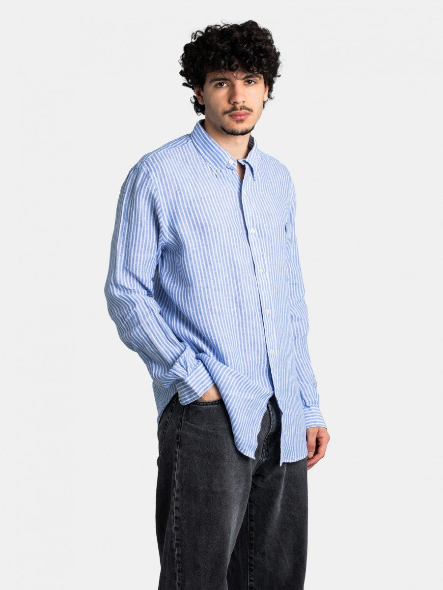 Ralph Lauren Custom Fit Striped Linen Shirt | Blue/White
