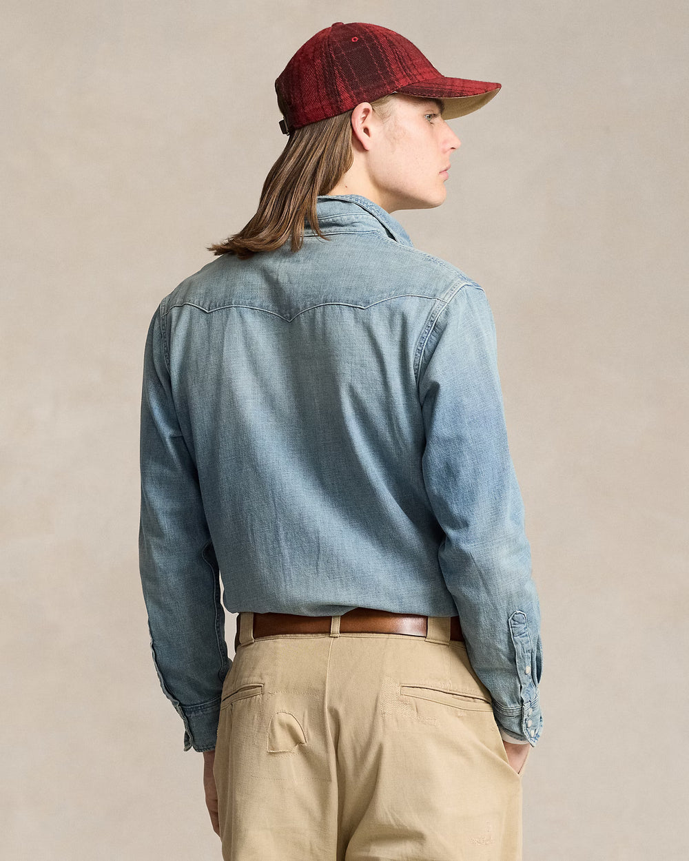 This version of our iconic Western shirt is generously cut from lightweight cotton denim and treated for a weathered look. On the interior, it features an archival "Denim & Supply" label.