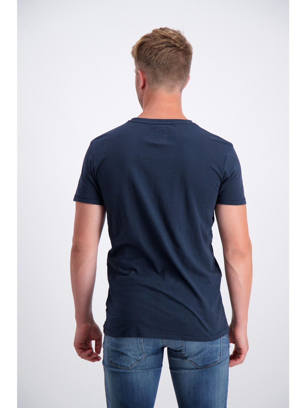Lindbergh Blue t-shirt with crew neck and a pocket on the left side of the chest. The t-shirt is made of 100% cotton and has a logo patch on the bottom left side. Made in slim fit, so it is a bit tighter on the body than in regular fit.