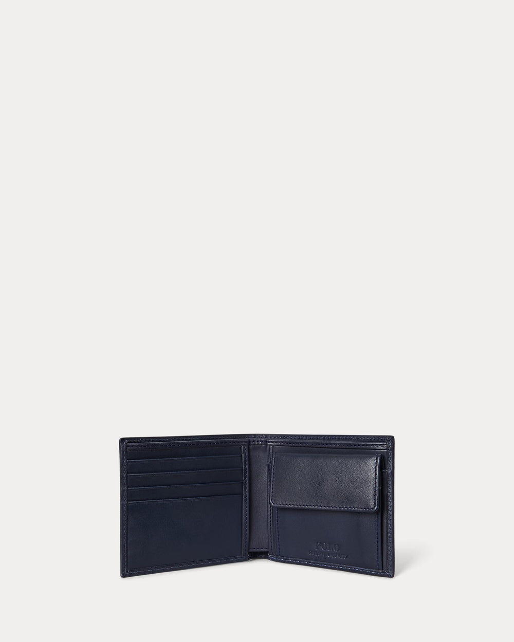The iconic Polo Bear is dressed for the season on this waxed leather wallet, which features multiple pockets, including a snapped compartment for coins.