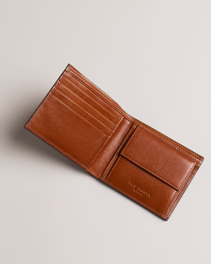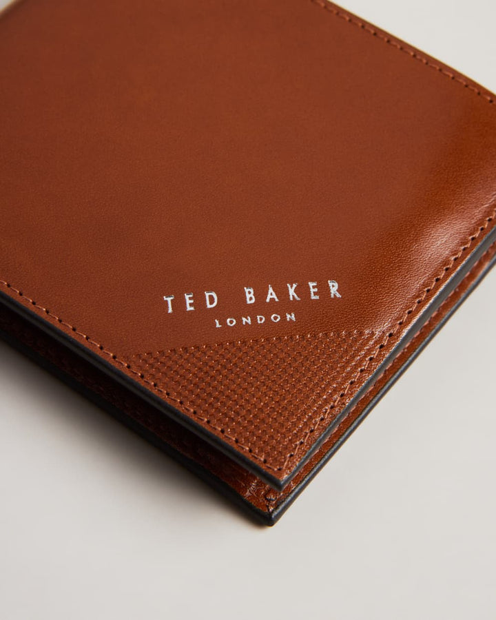 Ted Baker Prugs Embossed Corner Leather Bifold Coin Wallet | Tan