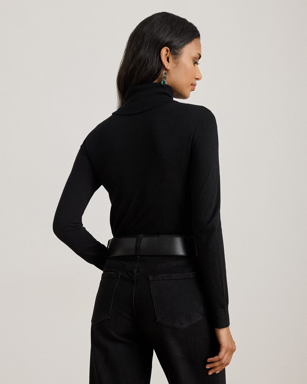 A timeless wardrobe essential, this slim-fitting roll neck jumper is realised in a luxuriously soft silk blend. A dainty “LRL”-engraved plaque on the hem adds signature style.