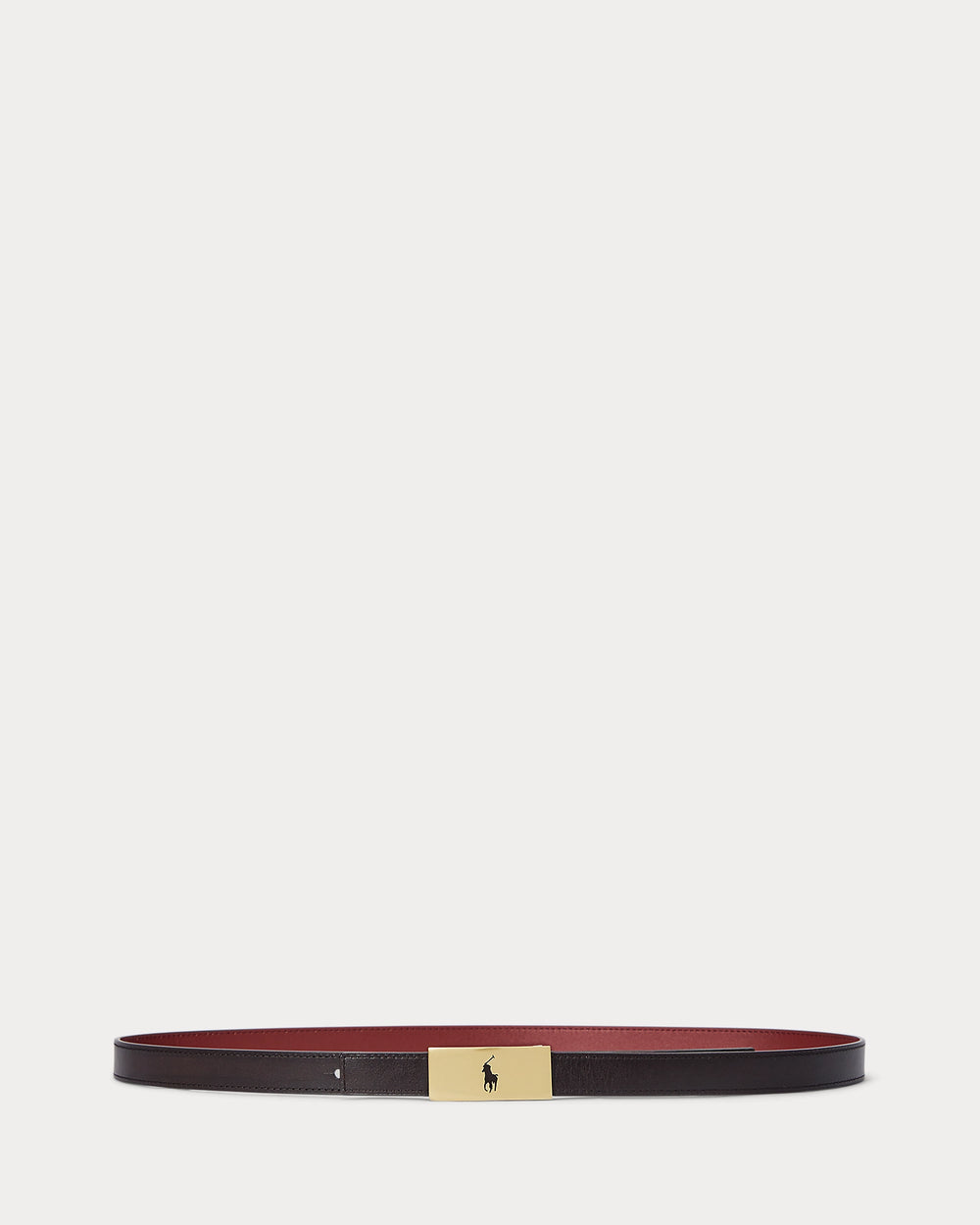 Part of the Polo ID collection, which is inspired by a sense of adventure, romance and optimism, this slender reversible belt is crafted with full-grain vachetta leather and showcases the silhouette of our signature Pony cut out on a gold-tone brass rectangle buckle.
