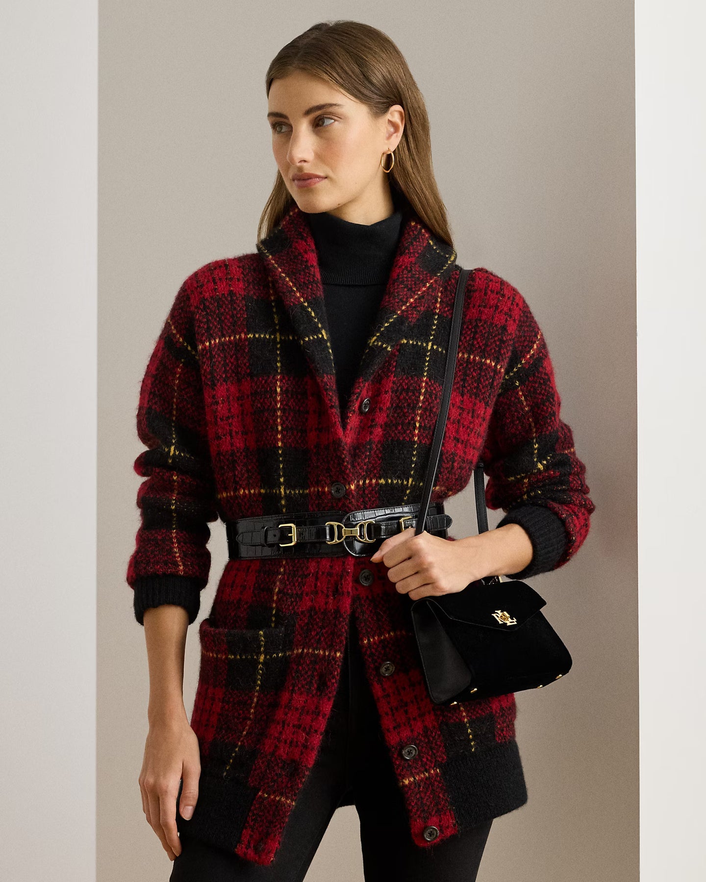"LRL" brass-finished turn-lock closure. Brass-finished plaque custom-developed with a "Lauren Ralph Lauren est. 1967" logo at the interior.