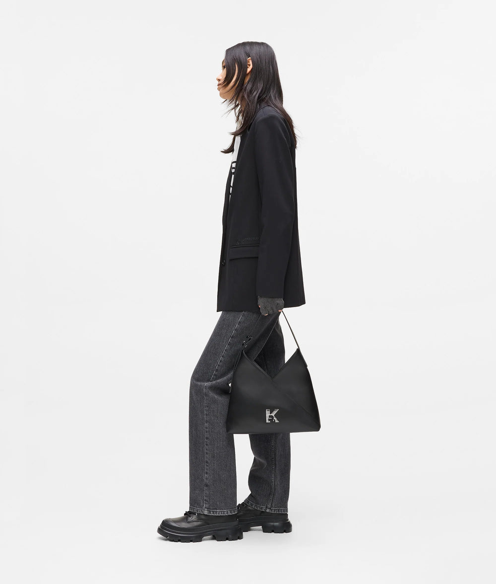Striking geometric panelling gives this leather tote bag a contemporary twist. A secure magnetic closure and an adjustable shoulder strap enhance functionality, while bold K-logo hardware adds a final statement touch.