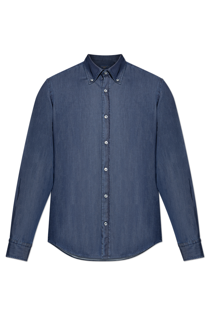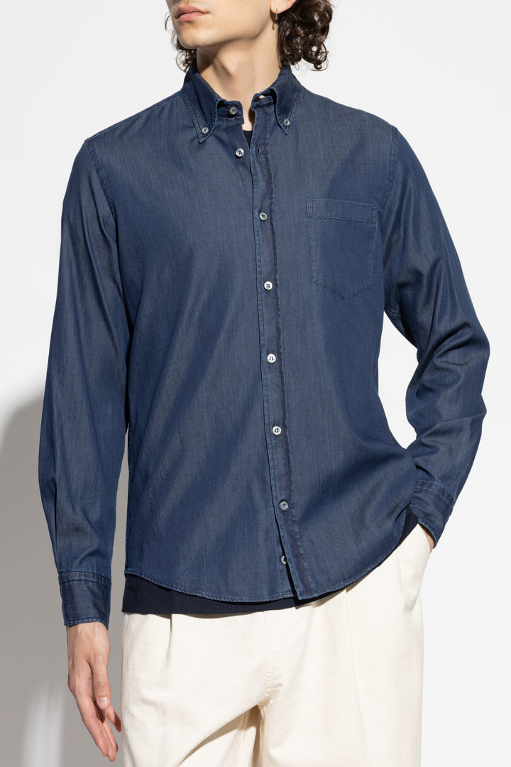 Its subtly tailored fit and rounded hem allow for versatile styling—both worn over trousers and tucked in. Exceptionally soft, smooth denim made from high-quality cotton guarantees outstanding comfort, while the subtle, delicate sheen of the fabric enhances the depth of color.