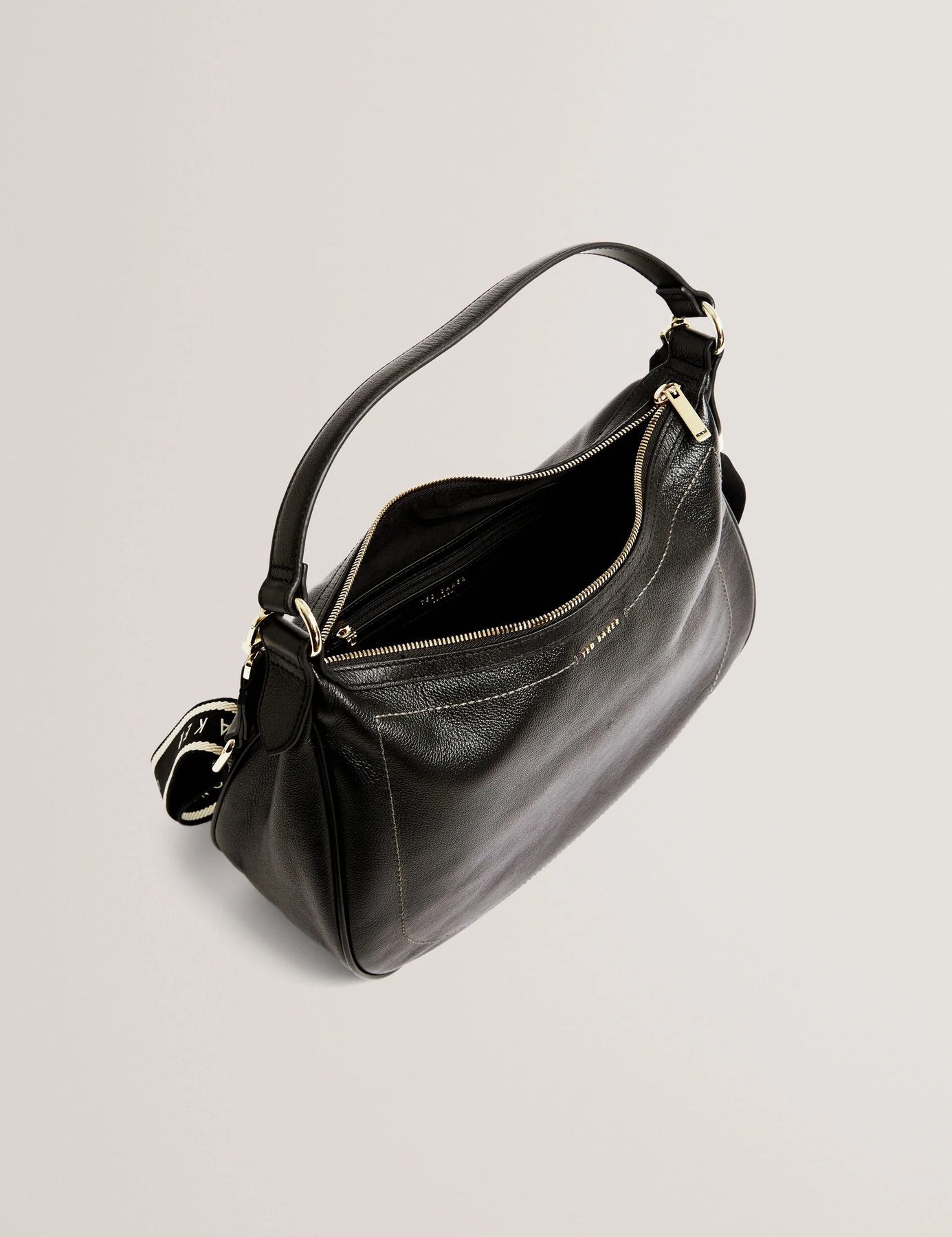 Ted Baker Lyshia Webbing Strap Large Leather Hobo Bag | Black