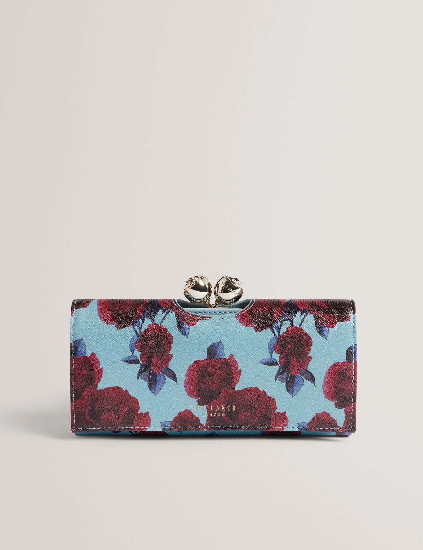 Crafted from saffiano texture leather and printed with a deep red rose motif, the ELLRIE large purse combines heritage charm with signature Ted Baker style. Because we love detail, the gold-tone bobble clasps are shaped into roses design for a polished yet sweet touch.