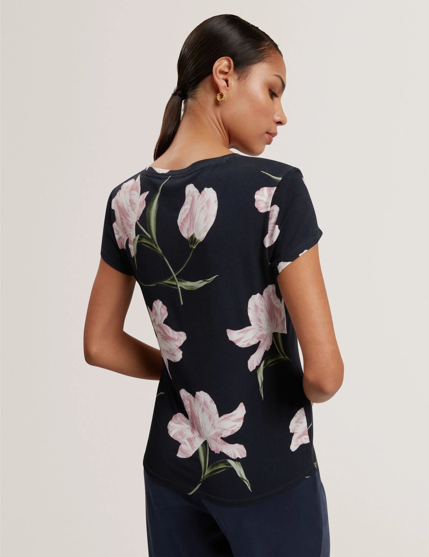 Ted Baker Tulip Print Fitted V-Neck T-Shirt | Navy